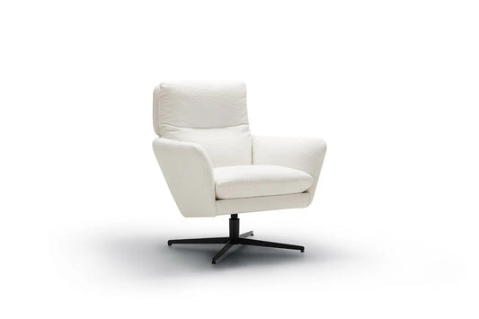 Fauteuil rembourré en tissu et similicuir avec pieds en acier noir