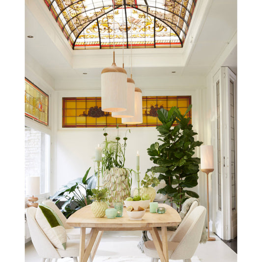 Lampe à suspension 3L imprimé bois nat+corde crème